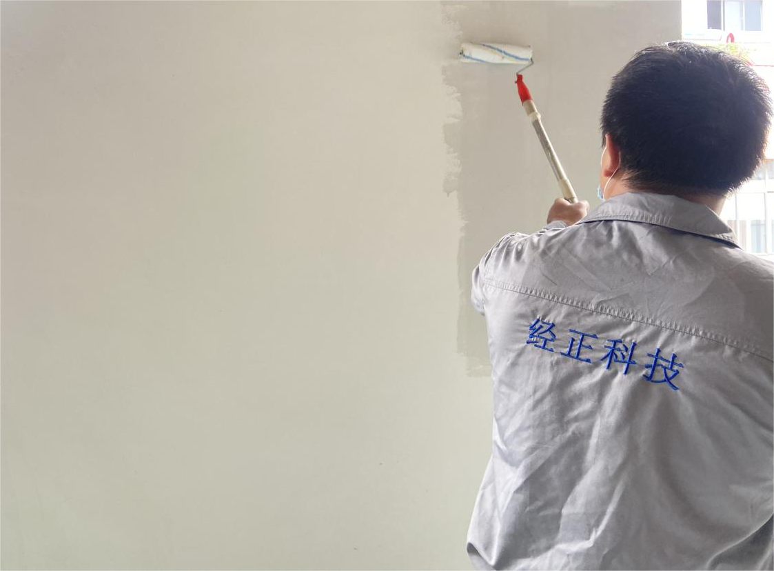 施工前需要检查基层,对表面浮粒,残渣进行铲除,对表面细微裂缝、小坑洼、砂眼、阳角碰坏细小处进行全方位填补处理,确保表面牢固、无疏松物、无空鼓、无潮湿、油污、明显的凹凸等现象,为后续的刷漆做好准备。