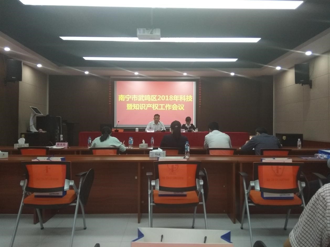 2018年4月26日,南宁市武鸣区2018年科技暨知识产权工作会议在东盟工港14号楼3楼会议室召开,本次会议由武鸣区科技局组织,园区各个公司代表人员参加。本次会议主要内容科普知识产权的重要性,及总结了过去一年武鸣区的科技工作情况。