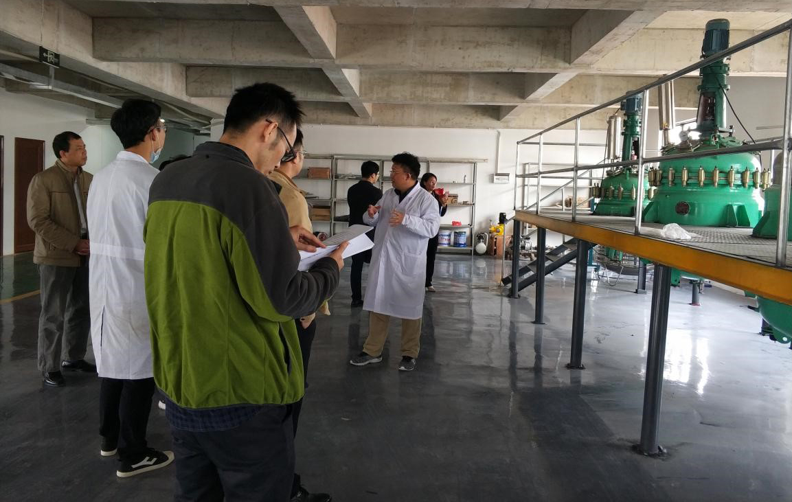 各领导首先参观海洋新材料、建筑功能材料、荧光发光材料三个小试实验室及超疏水船舶涂料中试生产线设备,董事长黄映恒博士向各位领导介绍了各小试实验室的研究方向并展示部分研究成果,同时介绍了中试生产线的工艺流程。